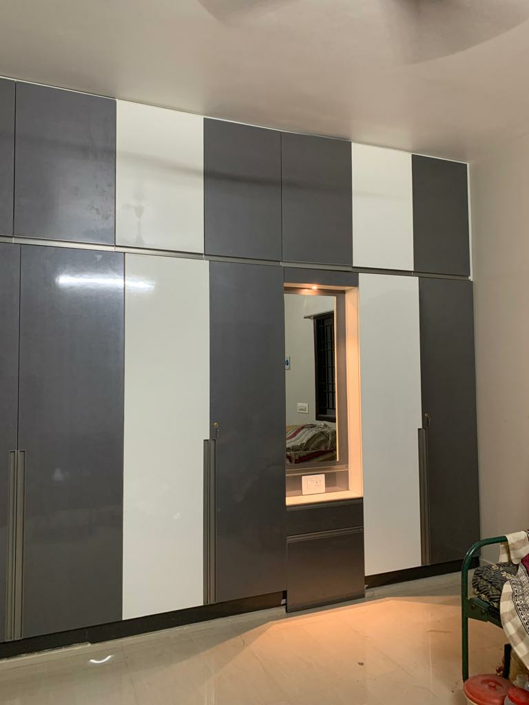Project Specifications: 16mm laminated boards, Sliding mechanisms, Mirror finish, Internal shelving, Hanging rods