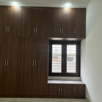 Integrated wardrobe and entertainment unit combining storage and media display in elegant design.