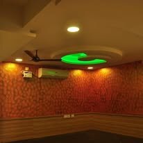 Project Specifications: Area: 400 sq ft, Material: Teak wood panels, Beams: Exposed wooden beams, Finish: Natural polish, Lighting: Warm LED spots