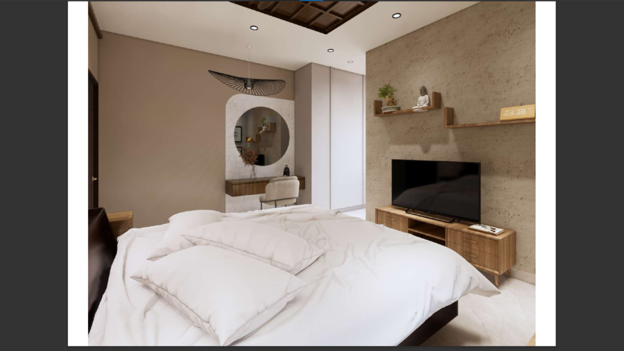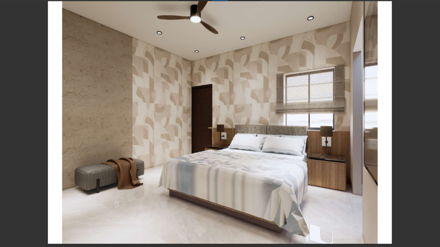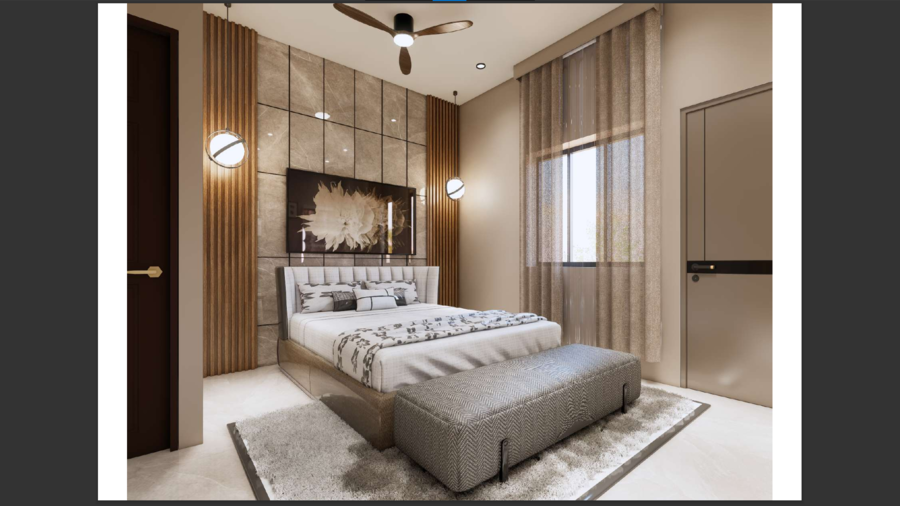 Modern master bedroom with integrated lighting design and premium finishes