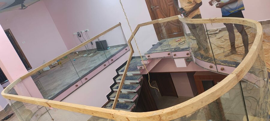 An elegant glass rail project for a home in Chennai. The installation featured frameless glass railings for the balcony and staircase, enhancing both safety and modern aesthetics. Using custom-designed tempered glass panels, our technicians ensured a seamless and secure fit. The transparent railings provided unobstructed views and an open, airy feel, making the space appear larger and more inviting. The homeowners were delighted with the craftsmanship and attention to detail, praising the timely and budget-conscious completion. This project highlights our dedication to quality and customer satisfaction.