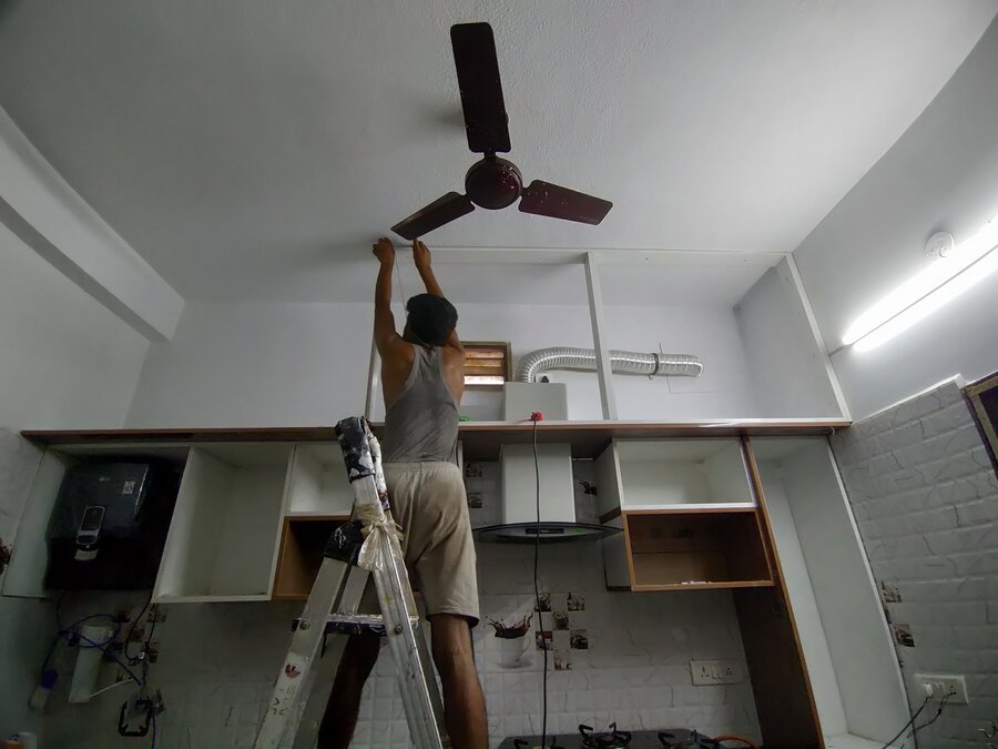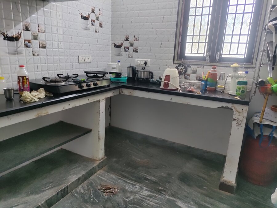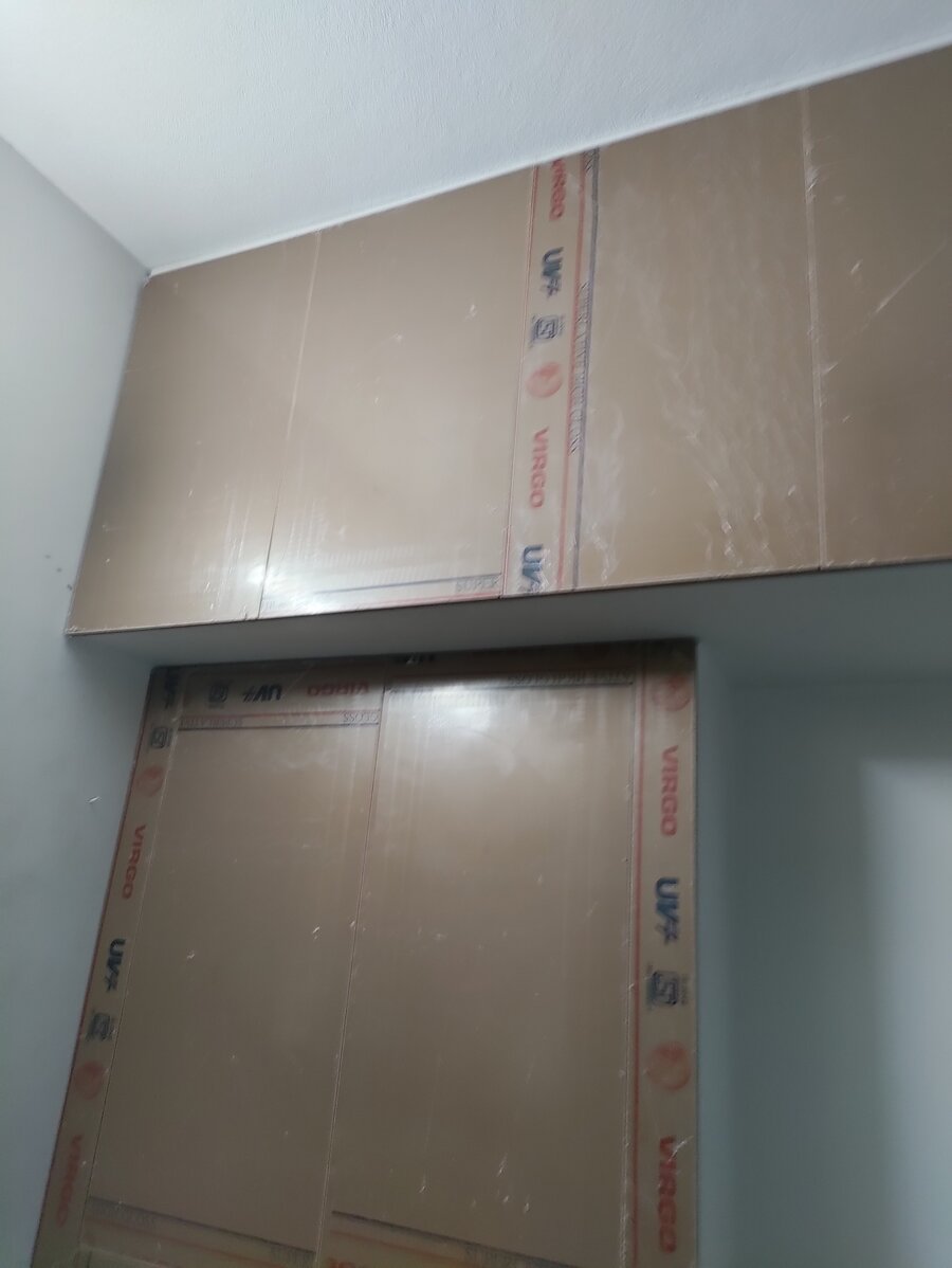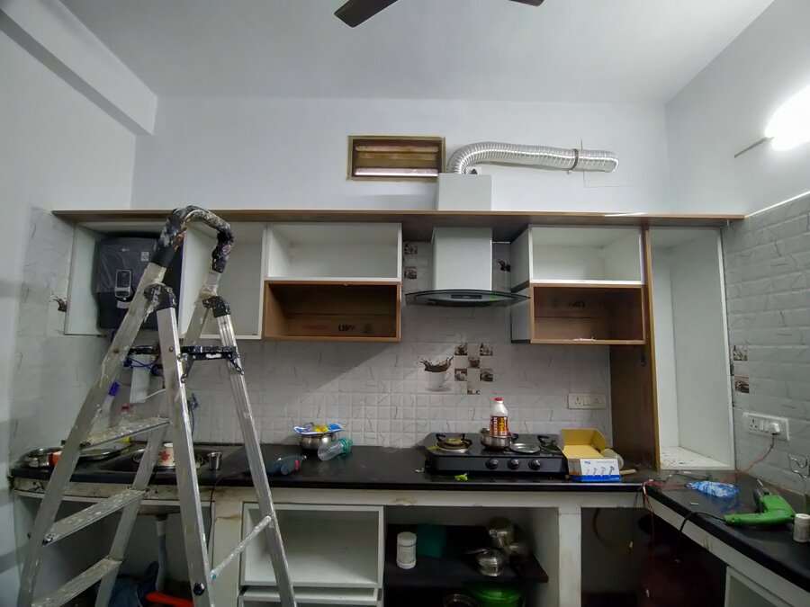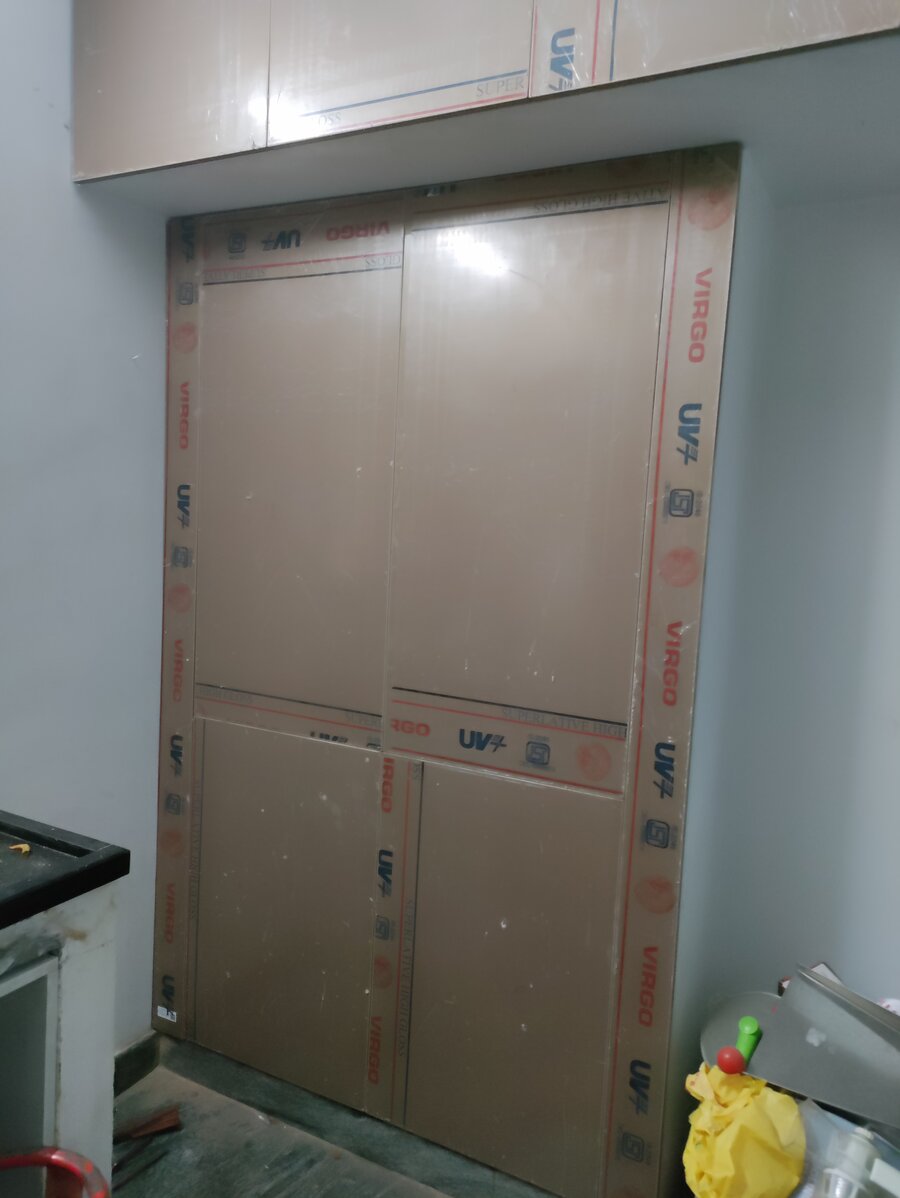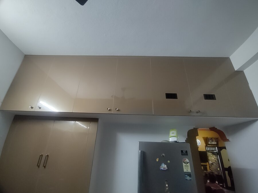 This projected started off with an requirement of making an modular kitchen and installing new shutter covers replacing the existing wardrobe shutter covers. Our team went and identified that there was pest in and around the kitchen and home so we started with removing of the old shutters and doing pest control work injecting the solution 1' inside the wall. Post that we started the works for Modular Kitchen. Additional to this the client asked for an New Dressing wardrobe with sliding doors with mirror in it. We handed over the site to client in 4 days. Materials used - Handles and fittings - Ebco Kitchen Material - Boilo