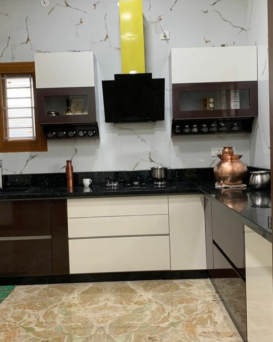 Project Specifications: Size: 6x12 ft, Layout: Parallel counters, Cabinet: Laminate finish, Storage: Pull-out organizers, Lighting: LED strips