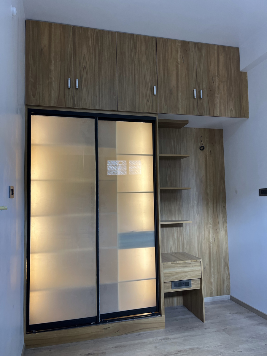 Sleek high-gloss wardrobe with contemporary design featuring clean lines and modern aesthetics.