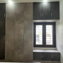 Spacious L-shaped wardrobe configuration providing extensive storage for large bedroom spaces.