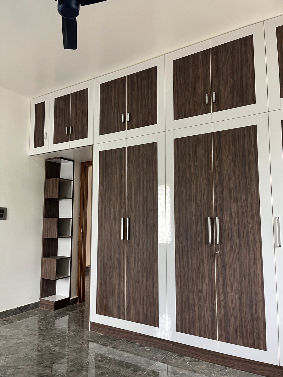 Solid wood panel wardrobe showcasing natural wood grain with traditional craftsmanship and durability.